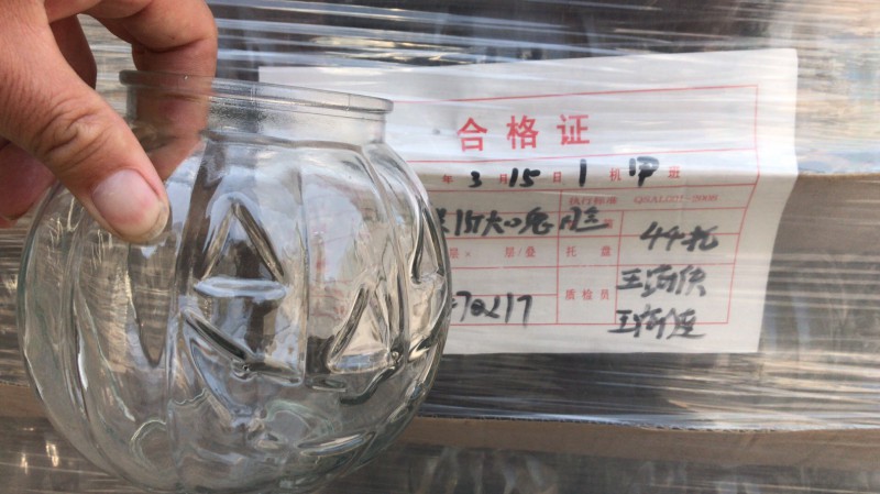 厂家直销1斤大口笑脸南瓜玻璃烛台,工艺蜡烛杯生产商